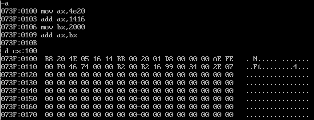 (2)使用A命令直接写入汇编指令