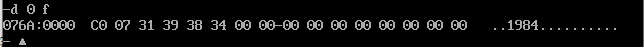 使用d命令查看数据段内容,观察是否把转换后的数字字符串'1984'存放在数据段中str标号后面的单元: