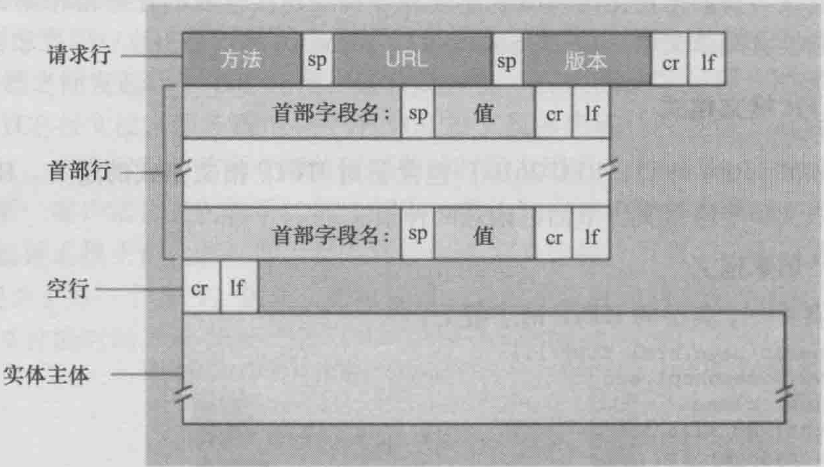 请求报文由三部分组成:请求行(request line)、首部行(header line)、实体体(entity body)。