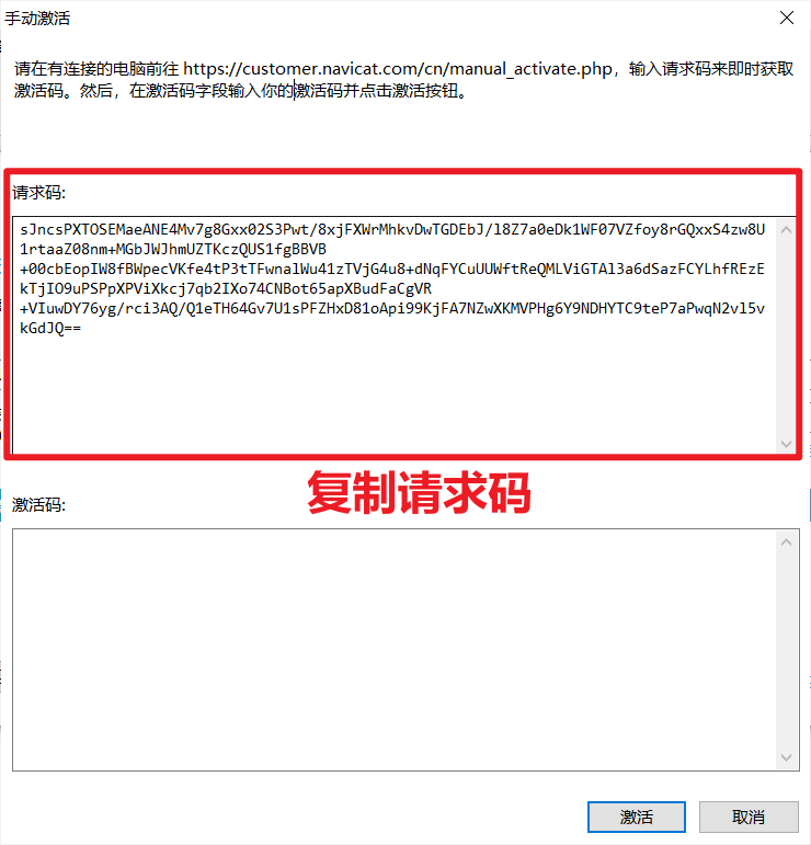 7. 手动激活窗口,复制请求码,不要关闭该窗口;
