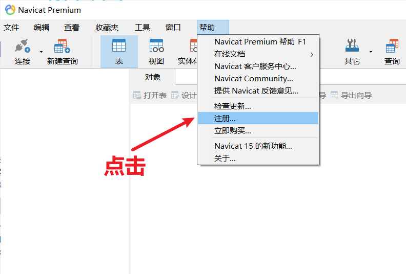 4. 打开 Navicat Premium 15 ,点击"帮助"→"注册";