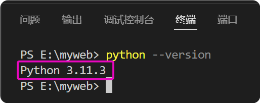 解释:在终端中输入以上代码,终端会返回python的版本,我们以此确认VSCode能正常调用python,效果如下: