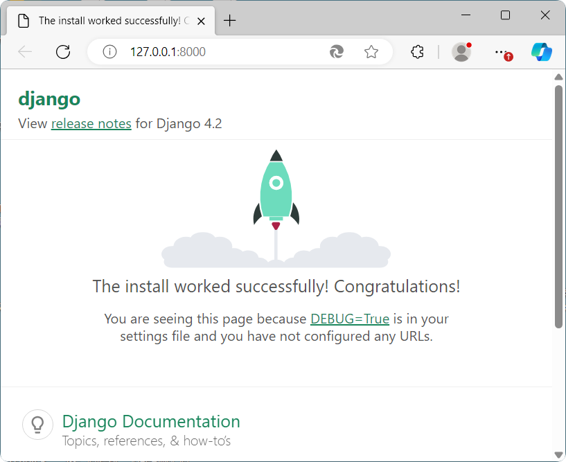 打开链接:http://127.0.0.1:8000/ ,看到如下页面即表示环境部署成功。