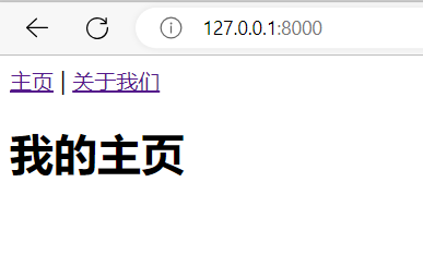 <!-- templates/base.html --> <header> <a href="{% url 'home' %}">主页</a> | <a href="{% url 'about' %}">关于我们</a> </header> {% block content %} {% endblock content %}
