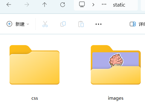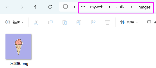 (2)在static文件夹下新建一个images文件夹,并将“冰淇淋.png”图片移到images文件夹中