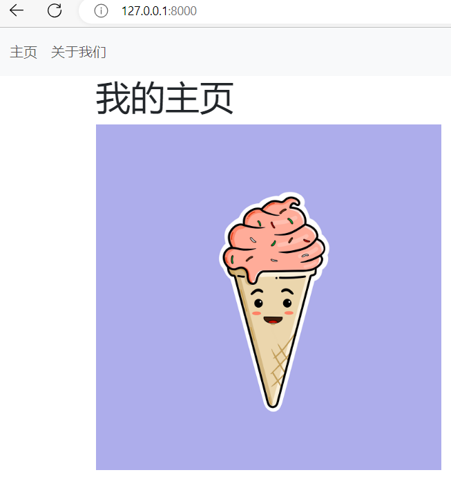 {% extends 'base.html' %} {% block content %} <h1>我的主页</h1> <img src="冰淇淋.png" alt="冰淇淋" width="400px;"> {% endblock content %}