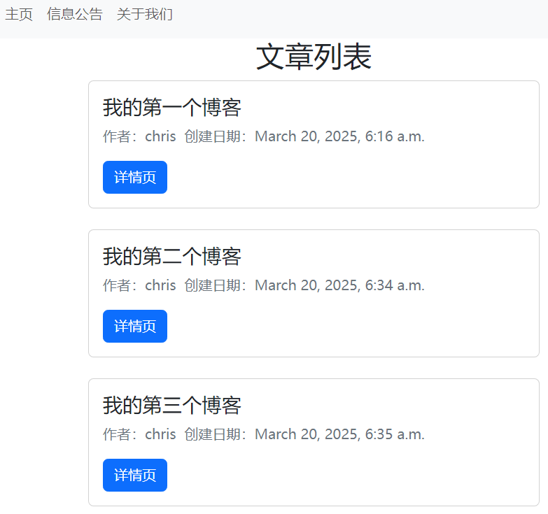 6.更新templates/posts.html文件,刷新信息公开页面,查看效果如下