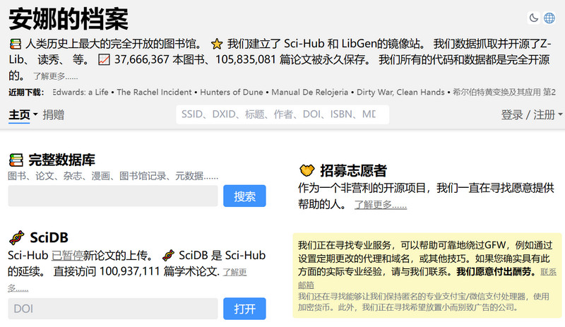 安娜的档案是一个影子图书馆搜索引擎。