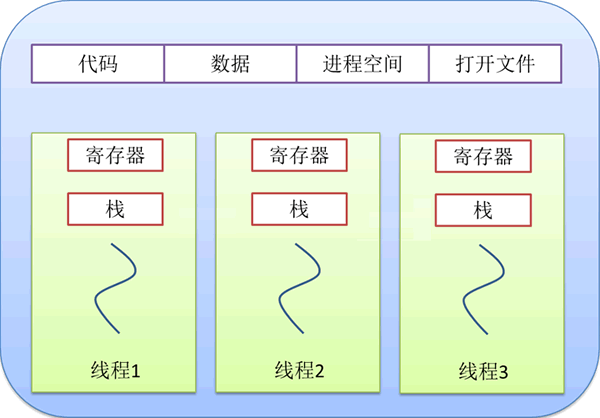 2. 一个进程由一个或多个线程组成,线程是一个进程中代码的不同执行路线