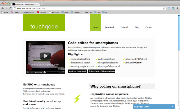 Touchqode将软件开发工具带进了智能手机里。你可以任何时候在任何地方查看、编辑、部署源代码。