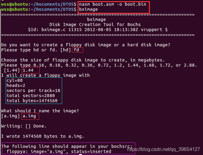 - 将二进制代码写入虚拟盘起始位置(dd)