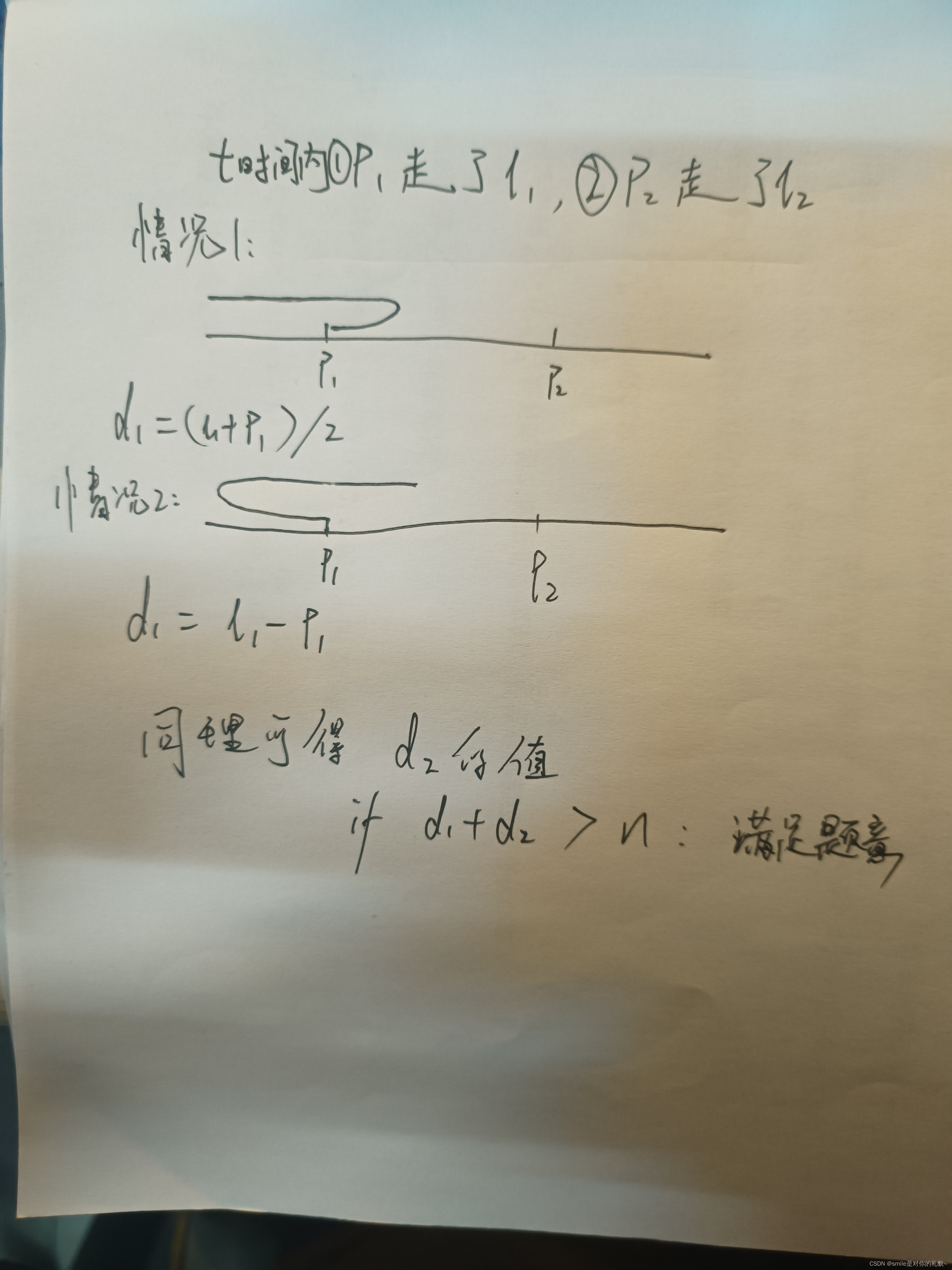 前两点我们很好理解,主要说说最后一点:我们二分时间,然后计算两个人走的互不交叉并且各包含一个端点的最长路径,就是计算出时间T的情况下,p1和p2的两个人在自己那边能覆盖多少,两个覆盖的长度大于n就表示覆盖完了。