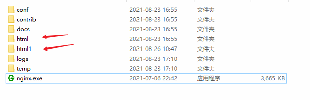 目录架构:htm为8080端口主目录,html1为8001端口主目录