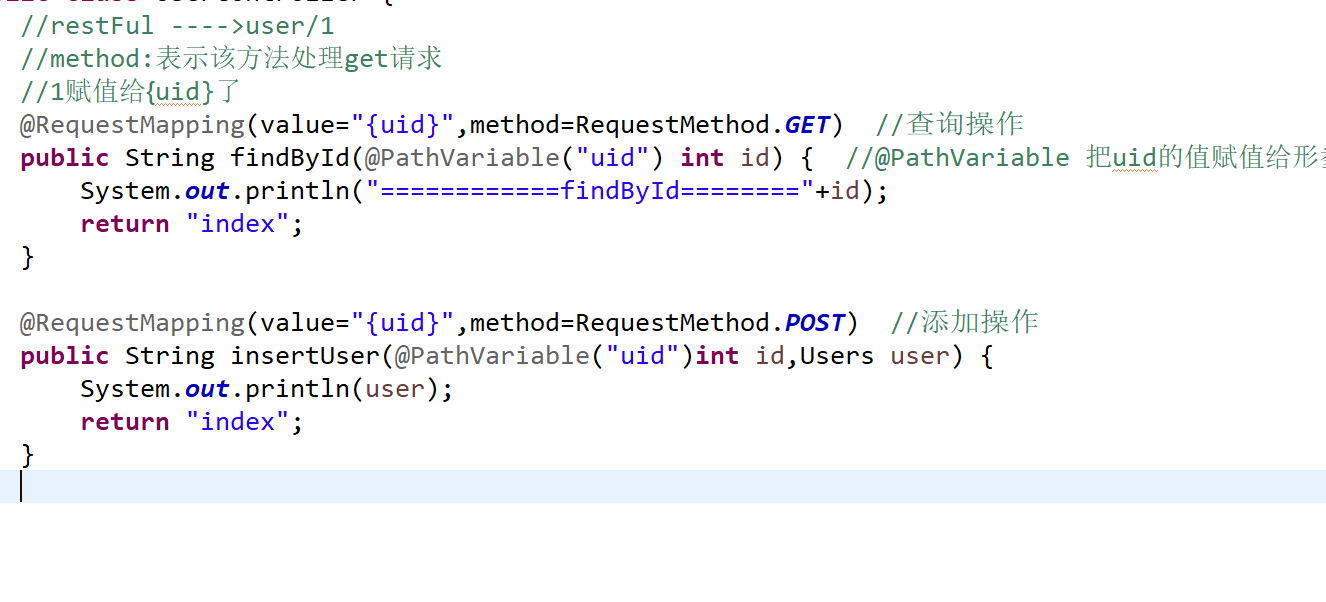 @PathVariable: 接受uri地址的值赋给方法的参数
