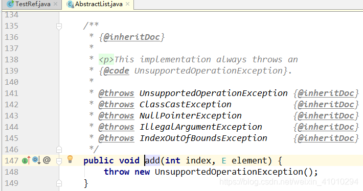 但是并没有去重写AbstractList的add(),导致调用的时候,抛出不支持操作的异常。