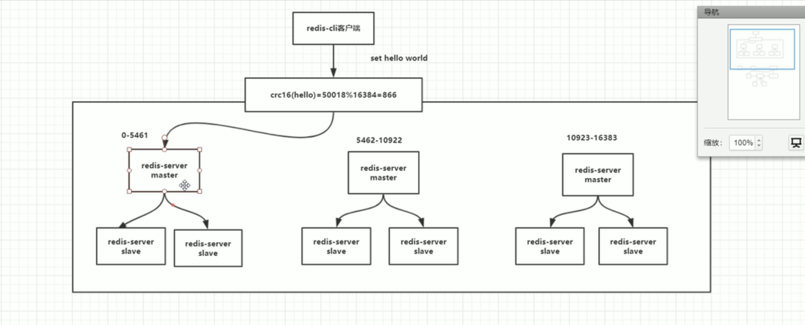 crc16算出key的hash值,然后与hash槽进行取余,最终放到对应节点的机器上。