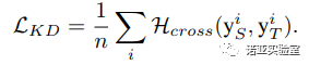 于是,我们使用交叉熵损失来使得学生网络的输出符合教师网络的输出,具体的损失函数为: