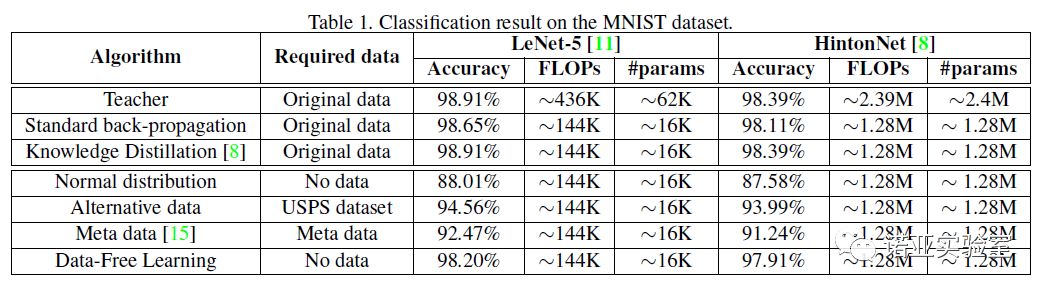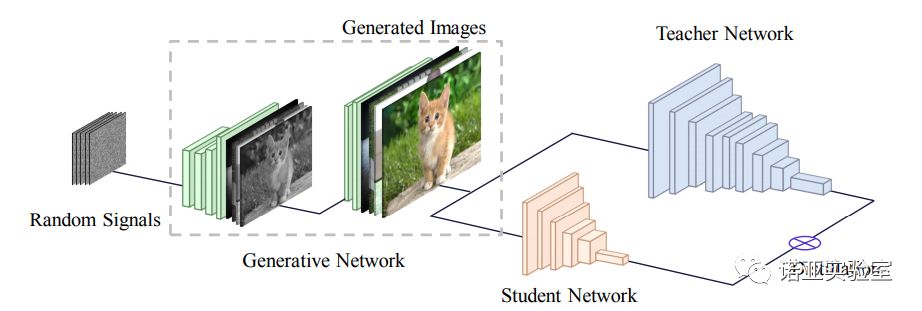 通过引入教师学生算法,我们解决了生成图片没有标签的问题,并且可以在待压缩网络结构未知的情况下对其进行压缩。