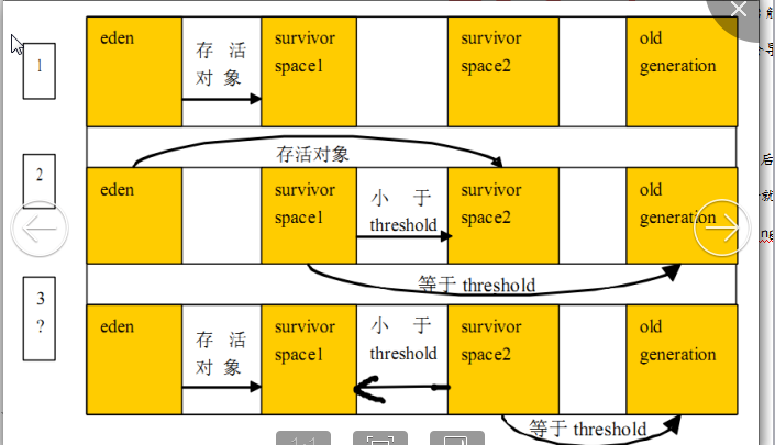 当年老代满时会引发Full GC,Full GC将会同时回收年轻代、年老代,当永久代满时也会引发Full GC,会导致Class、Method元信息的卸载其Minor 如下图所示