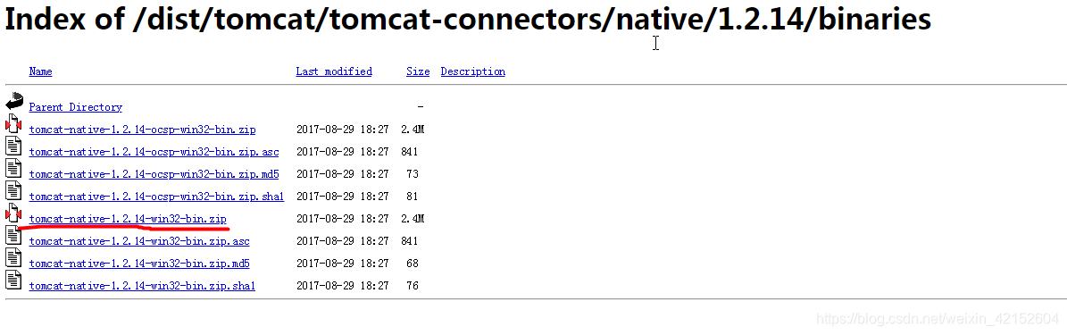 http://archive.apache.org/dist/tomcat/tomcat-connectors/native/1.2.14/binaries/ ,点击下载