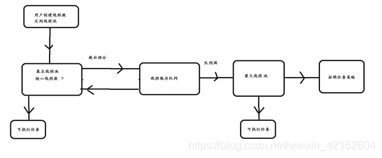 如果当前线程池中的线程数目达到maximumPoolSize,则会采取任务拒绝策略进行处理;