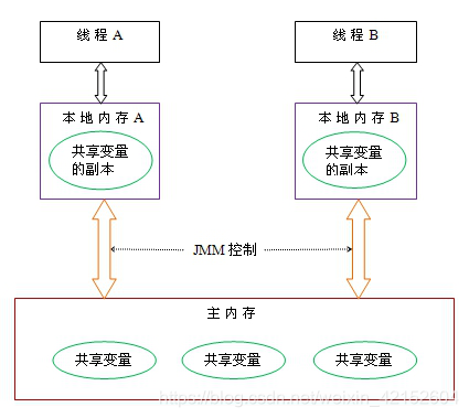 从整体来看,这两个步骤实质上是线程A在向线程B发送消息,而且这个通信过程必须要经过主内存。JMM通过控制主内存与每个线程的本地内存之间的交互,来为java程序员提供内存可见性保证。