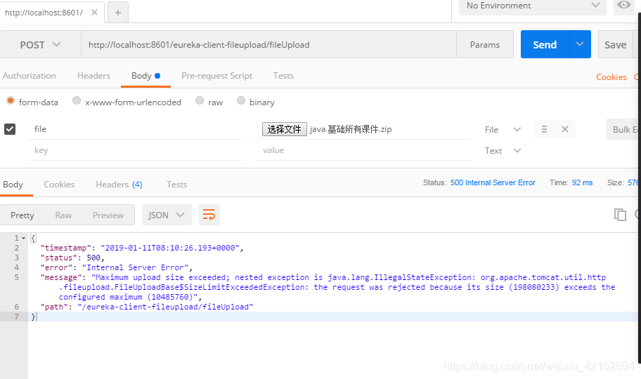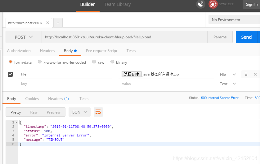 结果报错TimeOut,这是因为文件过大,请求事件过长,Hystrix被调用返回了,所以我们在zuul中配置