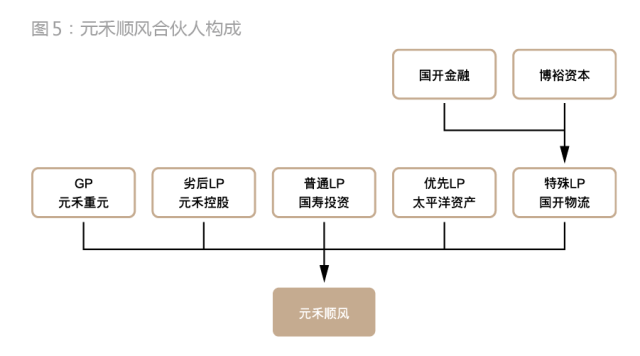 在完成顺丰控股这一平台的搭建后,四家投资机构就登场了,其中元禾顺风、嘉强顺风、招广投资均出资6亿元,占顺丰控股7.658%股权,古玉秋创出资1.2亿元,占顺丰控股1.532%股权。四家投资机构合计出资19.2亿元,占顺丰控股24.506%股权,顺丰控股剩余75.494%股权由顺丰集团持有(图4)。