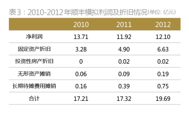 一般而言,企业依靠内部积累投资项目的资金来源主要是利润和折旧摊销。从顺丰2010-2013年的经营情况来看,其每年可用于投资的资金呈现不断上升的趋势,2012年年底时达到19.69亿元(表3)。考虑到顺丰今后3年的投资重点是工程机重型设备,当投资完成后,其形成的折旧又可作为投资资金的补充。