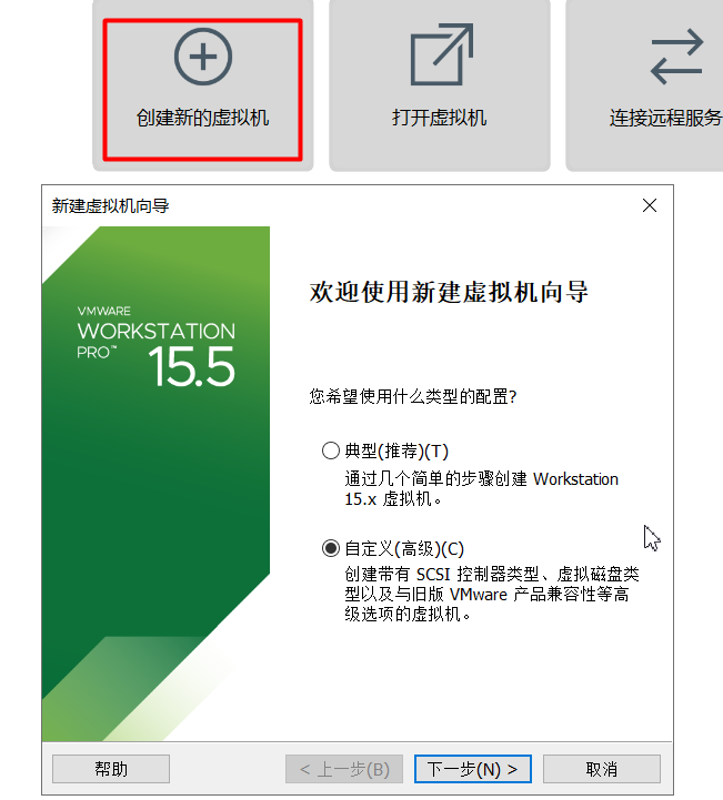 1.首先需要现在window上安装VMware Workstation 15.5版本的,这个一款功能强大的桌面虚拟化计算机软件,简单点就是这个软件能让我们在上面安装一台虚拟的计算机。