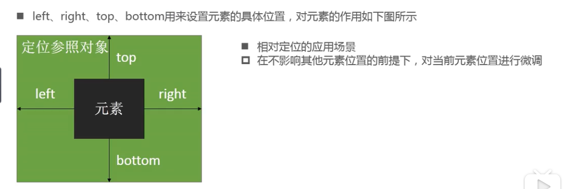 - 距离元素原来的left,right,bottom,top相对定位(相对四堵墙),值还可以负值