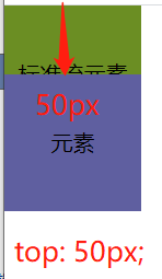 <style> .box, .box2 { display: inline-block; width: 100px; height: 100px; line-height: 100px; text-align: center; } .box { background-color: rgb(95, 95, 160); position: relative; /* left: 50px; */ /* right: 50px; */ /* bottom: 50px; */ top: 50px; } .box2 { background-color: olivedrab; } </style> </head> <body> <span class="box">元素</span> <span class="box2">标准流元素</span> </body>