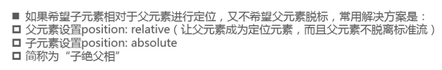 - 在绝大数情况下,子元素的绝对定位都是相对于父元素进行定位