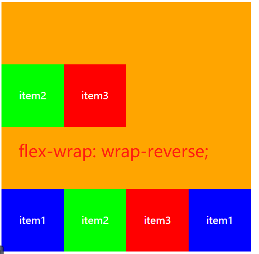 - wrap-reverse : 多行(对比wrap, cross start 与 cross end 相反)