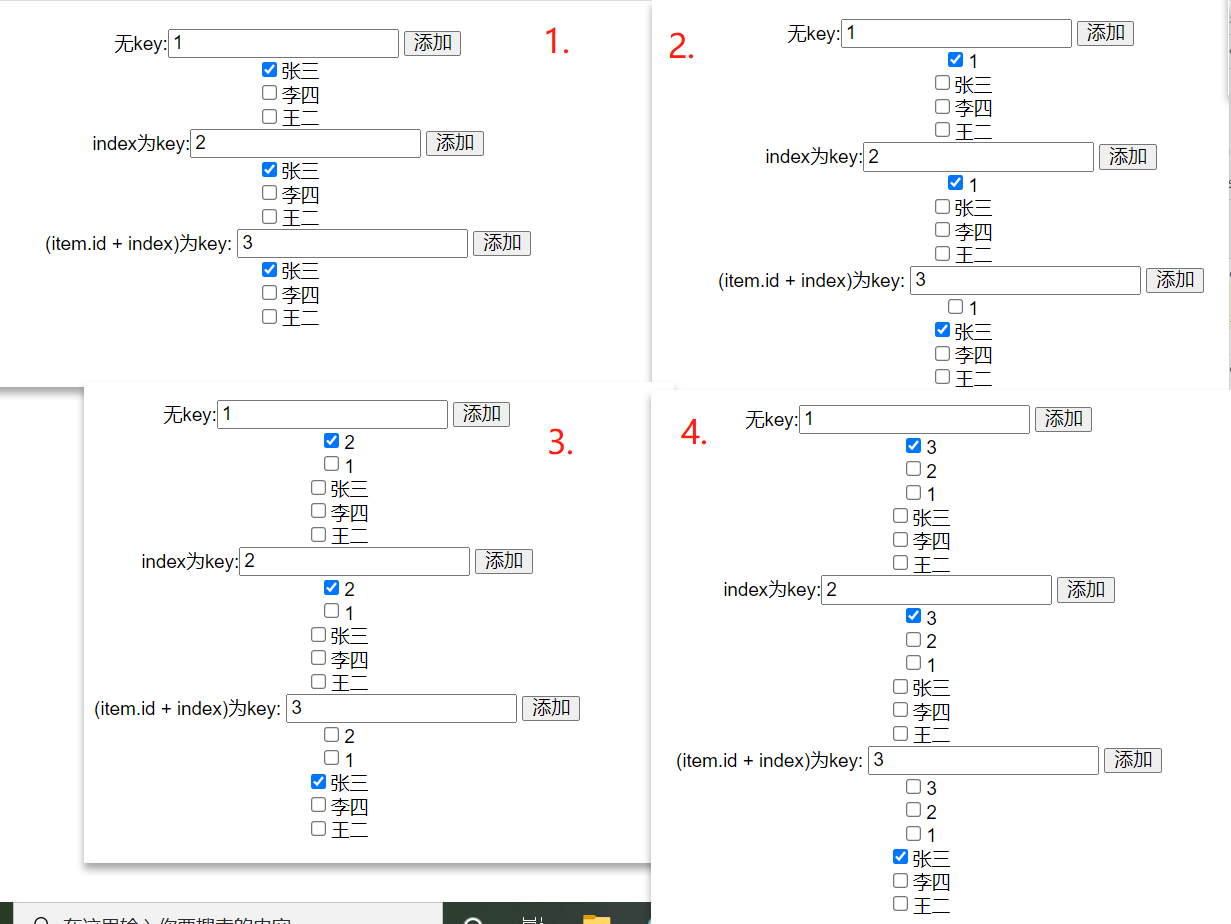 4、使用下标index作为Key:数组的操作删除新增排序,会造成BUG