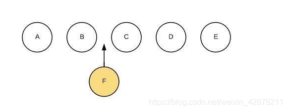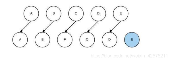 我们希望可以在B和C之间加一个F,Diff算法默认执行起来是这样的: