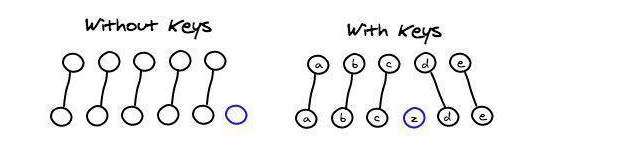 当以数组为下标的index作为key值时,其中一个元素(例如增删改查)发生了变化就有可能导致所有的元素的key值发生改变
