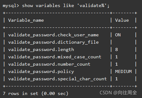 --MySQL登录后使用这个命令查看密码策略