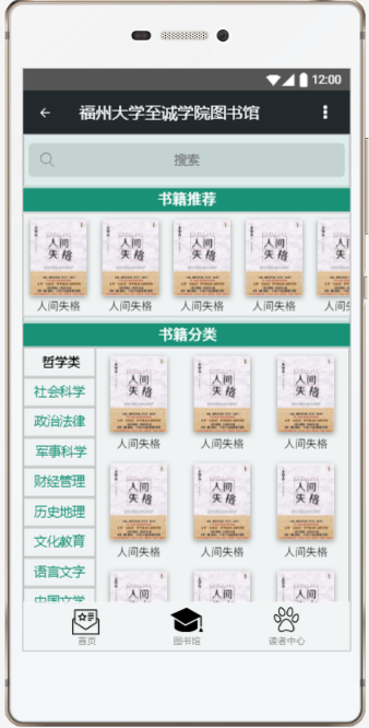 6、 图书馆的上下滑动分类项,选择后可以在右边展现对应分类的书籍