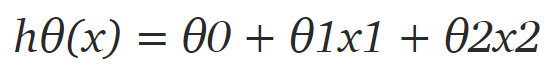 其中 x1 和 x2 是两个特征(即房屋面积和房间数量)。然后编写一个返回该假设的简单 Python 函数: