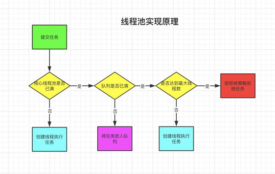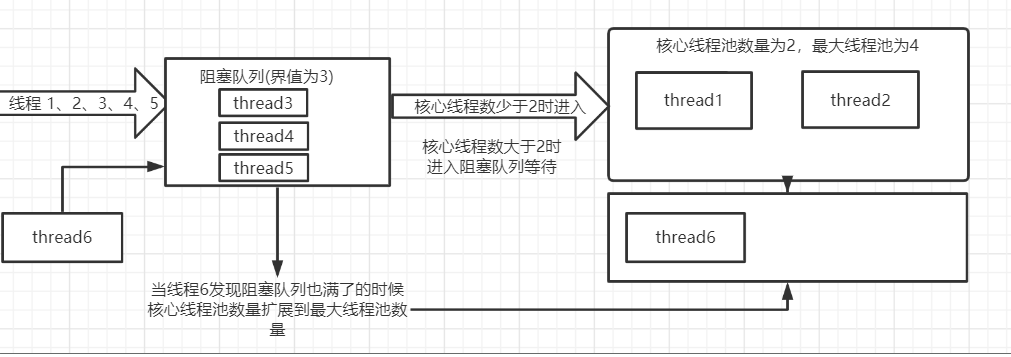| RejectedExecutionHandler | 当提交任务数超过maxmumPoolSize+workQueue之和时,任务会交给RejectedExecutionHandler来处理 |