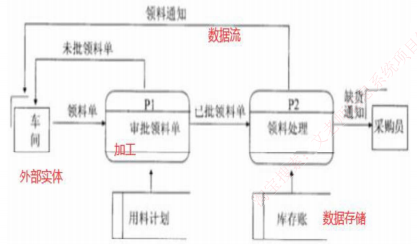 DFD由数据流、加工、数据存储和外部实体四要素组成