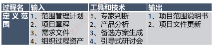 1.定义范围:制定项目和产品详细描述,明确产品、服务或成果的边界