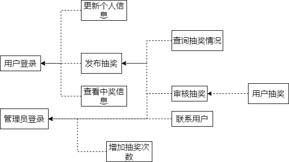 用户成功登录系统后,可以进行查看自己的信息,以及发布自己的抽奖,对于之前的抽奖在开奖后系统会推送是否中奖等信息。用户也可以浏览现有的抽奖,以及进行抽奖等操作。