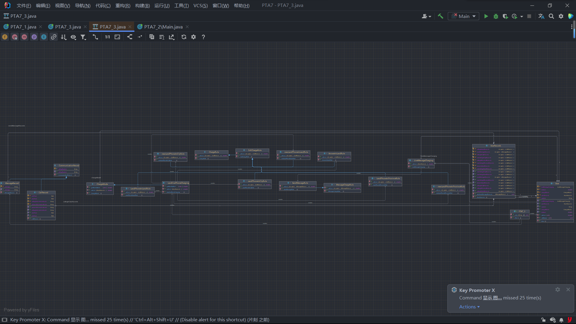 本次总结6-8次PTA题目集电信计费三次,三次电信计费题目,主要是考察正则表达式和ArrayList和集合,然后就是对类的封装、继承等知识,在写新的大作业需要认真构思,因为大作业的各个功能类是迭代的,前面如果没有做好后的话,做后面的工作量就是增加且复杂。
