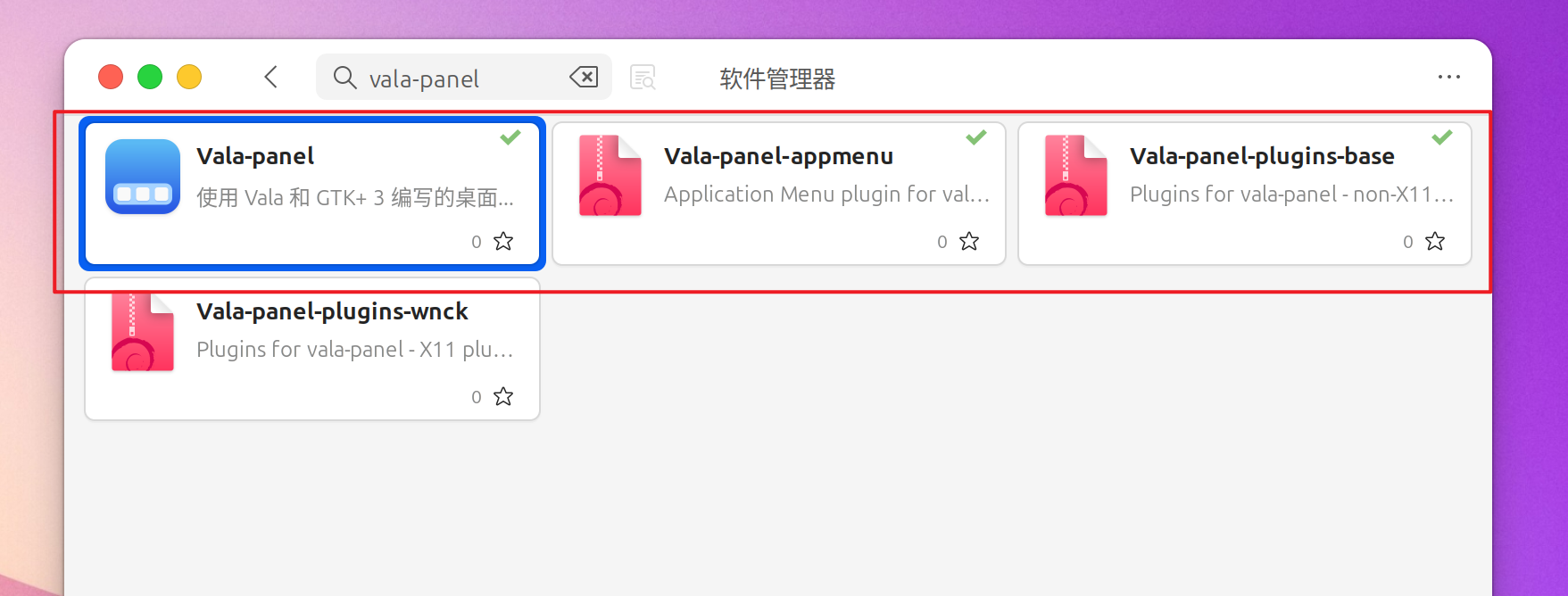 应用商店搜索:vala-panel,和 vala-panel-appmenu;安装这两个,vala-panel-plugins-base 是附带安装的