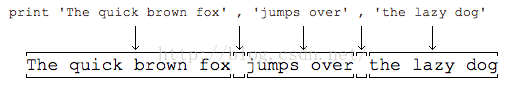 >>> print 'The quick brown fox', 'jumps over', 'the lazy dog'