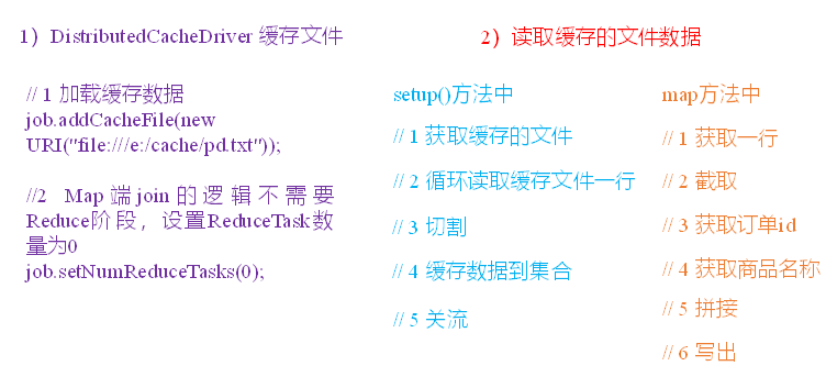 1)在driver中设置加载缓存文件,这样每个maptask就可以获取到该文件;设置reducetask个数为0,去除reduce阶段