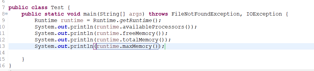 Runtime类代表Java程序运行时环境,可以访问jvm相关信息:处理器数量、内存信息
