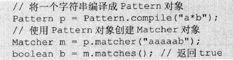 patten对象是正则表达式编译后在内存中的表示形式,因此正则表达式字符串必须先被编译为Pattern对象,任何再利用该Pattern对象创建对应的Matcher对象。